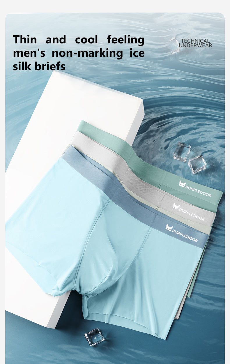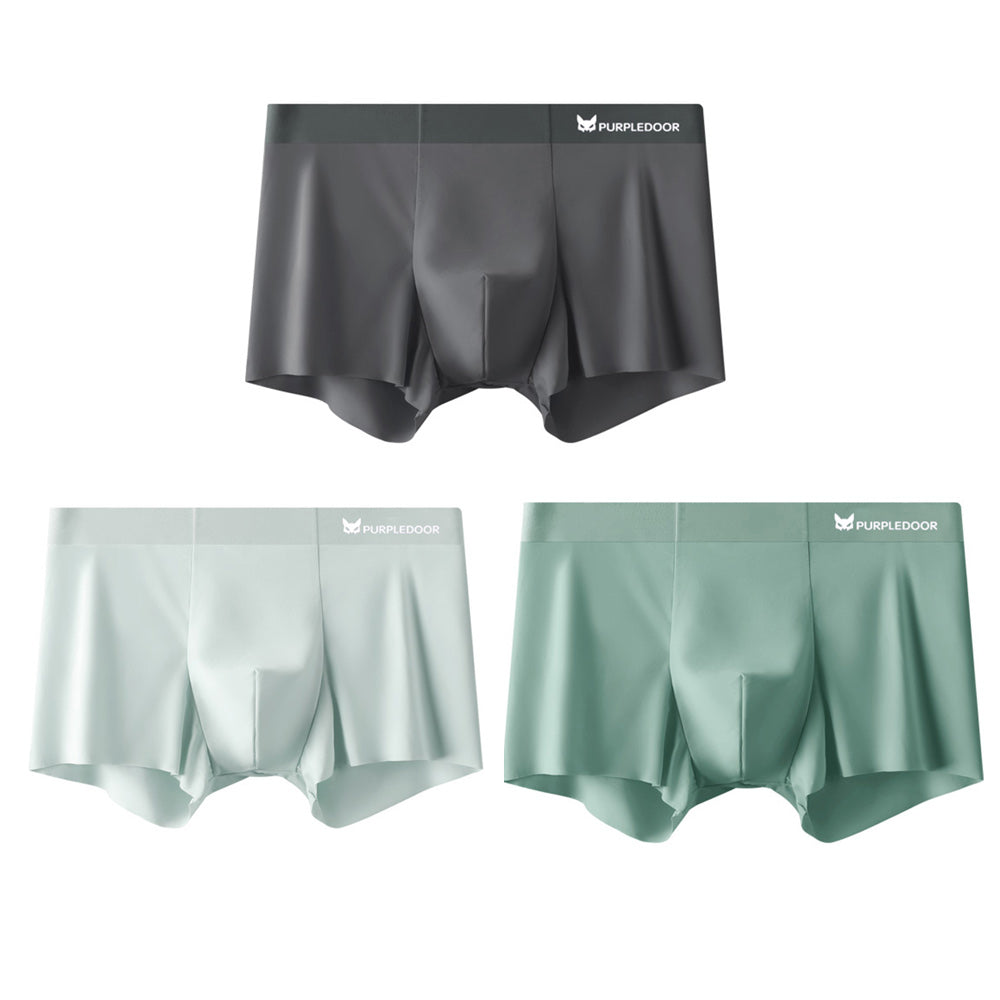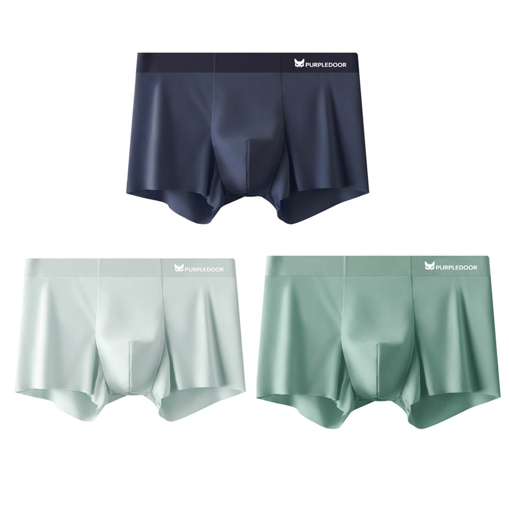 Purple Door 3Pcs Ice Silk Man Underwear Boxer Metal Fiber Antistatic Men Underpants Seamless Cut Hem Men's Panties Boxers Shorts Trunk
